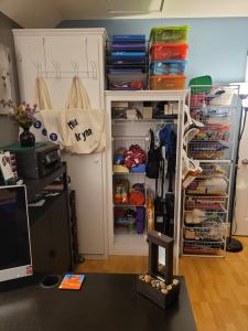 Often when I am stressed and feel like things are out of my control, I organize my office. Over the past 3 years, my office has gone from a desk and a book shelf in a corner of our basement, to a spare room turned office (thanks mom!) with that same desk, the same book shelf, but also 2 cabinets, 3 rolling carts, 2 storage shelves, a wire bin system, a toy organizer, and a closet.