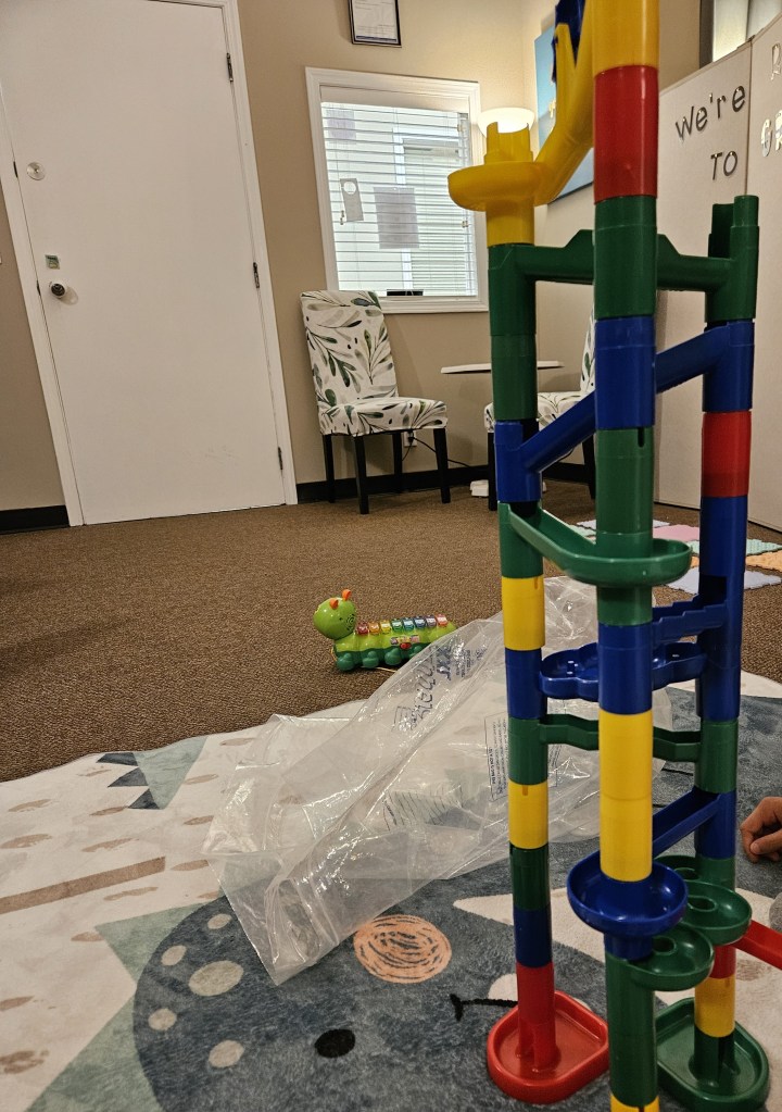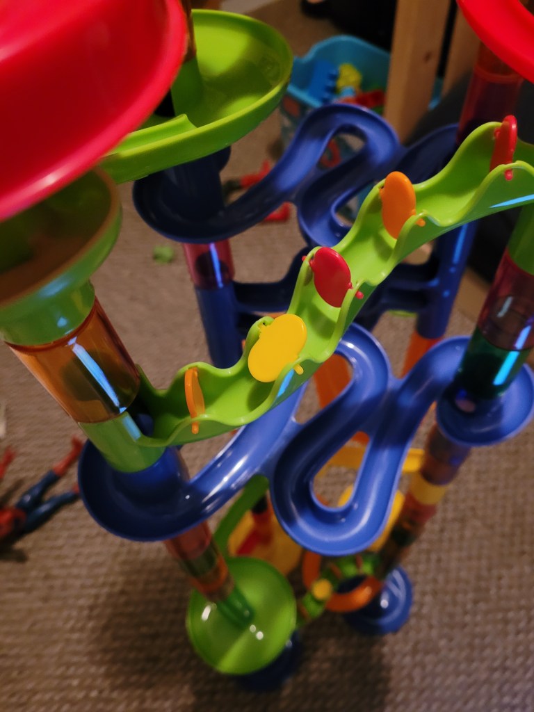 Marbles towers are a hit for almost every child. The younger ones enjoy watching the marbles go down the tower and race to the bottom. The slightly older children enjoy picking which piece to put on next and working together to build “the tallest tower”, and the older kids enjoy building their own tower or having a tower competition and seeing who’s marble makes it to the bottom first.