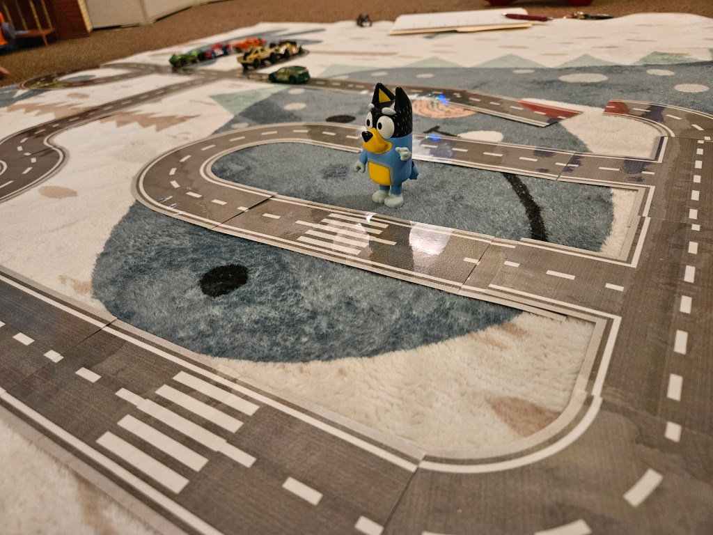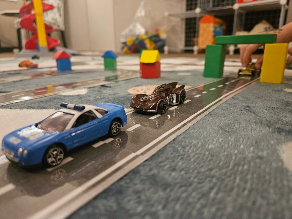 Cars have always been a classic toy. What I find fun is how open ended they are and how they aren’t limited to a floor mat or a car ramp. They can go down slides, get lost in sensory bins, have cardboard bridges and parking lots, or roads printed from the computer. They can also be lined up or raced.